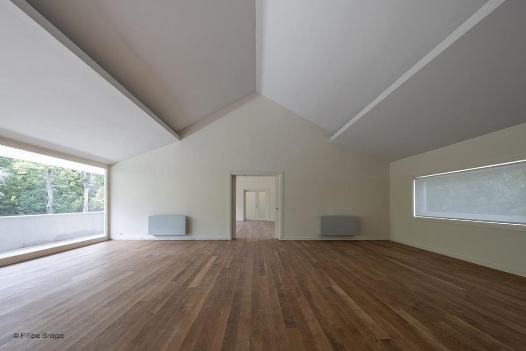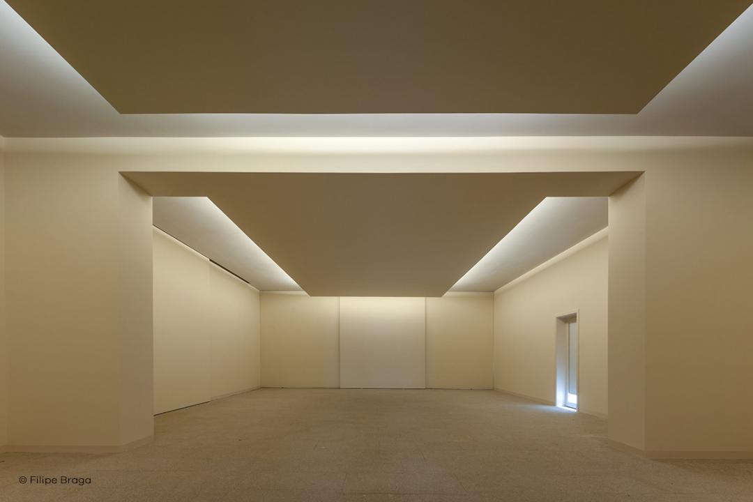 O espaço existente reabilitado na antiga garagem será utilizado como sala de exposições temporárias, tendo como base de referência Manoel de Oliveira e a sua obra.