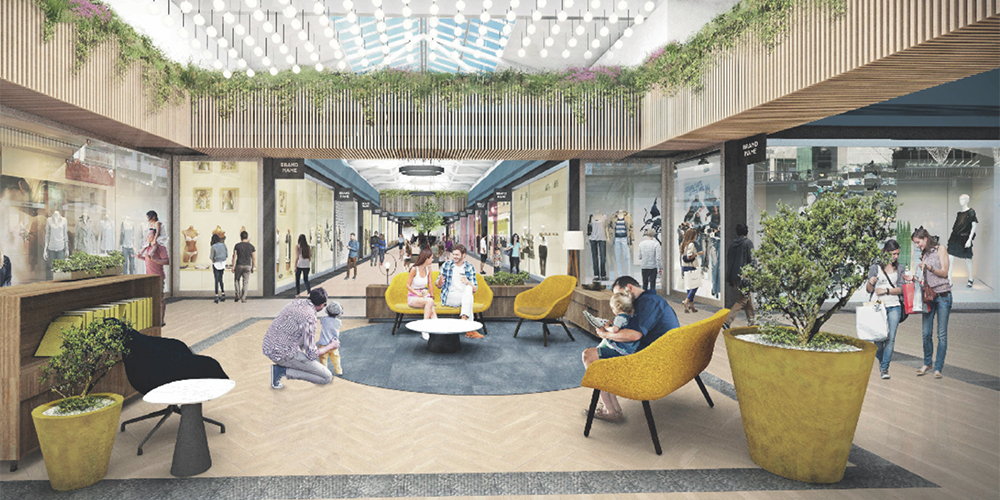 A intervenção contemplará a reformulação do pavimento e dos tectos existentes, alteração das fachadas das lojas, instalação de mobiliário funcional e decorativo e reforço da iluminação existente. Complementarmente, intervencionar-se-ão as infra-estruturas na zona do Food Court e das instalações sanitárias e reforçar-se-á, pontualmente, a estrutura existente de modo a dar resposta ao aumento das cargas actuantes.